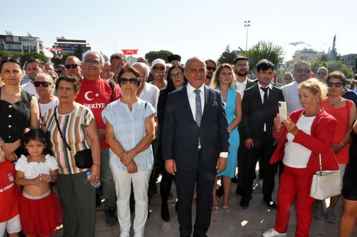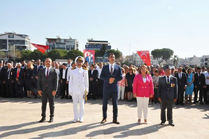 30 Ağustos Zafer Bayramı'nın 102'inci yıl dönümü dolayısıyla Didim Cumhuriyet Kent Meydanı'nda Atatürk Anıtına çelenk sunum töreni düzenlendi.
