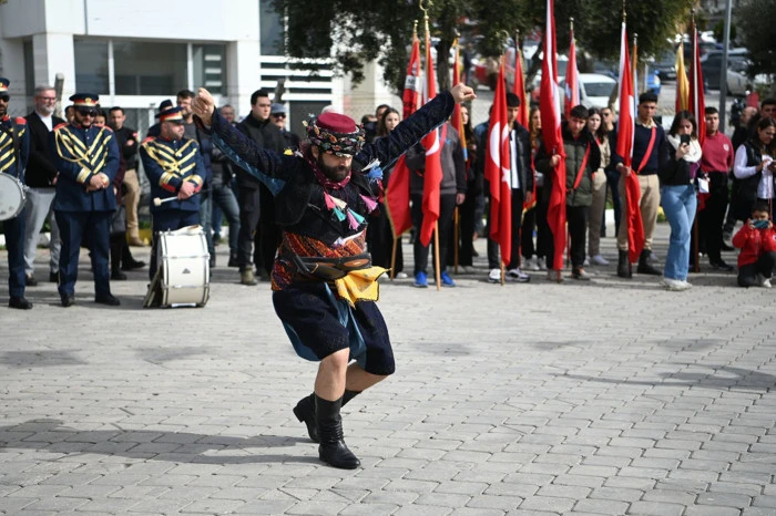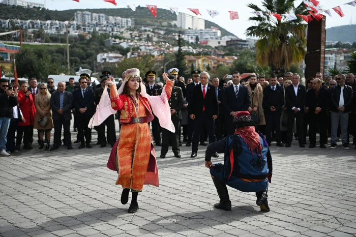 Törende, Kuşadası Kaymakamı İbrahim Keklik, Kuşadası Garnizon Komutanı Personel Albay Metin Şimşek ve Kuşadası Belediye Başkanı Ömer Günel tarafından Atatürk heykeline çelenk sunuldu. Saygı duruşunda bulunulup, İstiklal Marşı’nın okunmasıyla devam eden törende, Şehit Kaya Aldoğan Anadolu Lisesi öğrencileri günün anlam ve önemini belirten konuşmayı yapıp şiirler okudu. Kuşadası Belediyesi Halk Dansları Akademisi’nin (KUŞADANS) ve Şehit Kaya Aldoğan Anadolu Lisesi öğrencilerinin sergilediği çeşitli halk oyunları gösterileri de beğeni topladı.