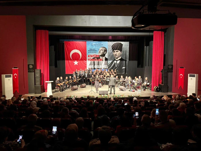 Şükran Güngör-Yıldız Kenter Kültür Merkezi ve Tiyatro Salonu'nda düzenlenen konserde, Şef Özcan Yılmaz önderliğindeki Büyükşehir Belediyesi Türk Halk Müziği Korosu, Aydınlılarla buluşturuldu. Konuklar, duygusal dakikaların yaşandığı konsere bayraklar ve alkışlarla eşlik etti. Unutulmaz bir gece yaşayan vatandaşlar, bu anlamlı etkinlik için Başkan Çerçioğlu’na teşekkür etti.