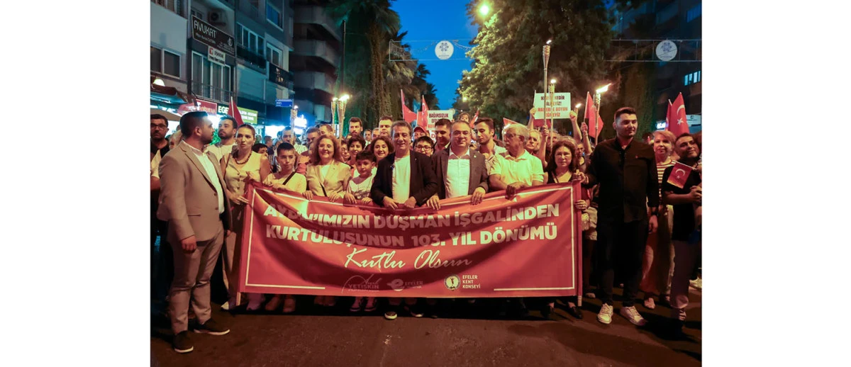 Efeler Belediye Başkanı Anıl Yetişkin’in, Aydın'ın düşman işgalinden kurtuluşunun 103’üncü yıl dönümü dolayısıyla düzenlediği Fener Alayı’na binlerce kişi katıldı. Büyük bir coşkuya sahne olan etkinlikte vatandaşlar geceyi fenerlerin ışıklarıyla gündüze çevirirken, özgürlük ve bağımsızlık sloganlarıyla şehri inletti.