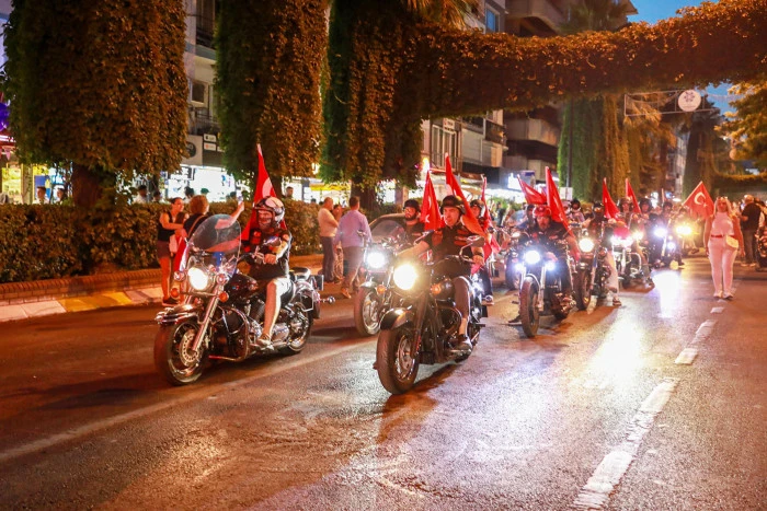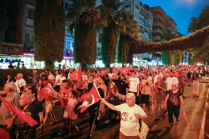 Yürüyüş, Adnan Menderes Bulvarı, Kıbrıs Caddesi, Kozdibi Meydanı ve Kütüphane Caddesi üzerinden devam ederek başlangıç noktası olan İstasyon Meydanı’nda sona erdi. Etkinlik boyunca şehrin cadde ve sokakları fenerlerin ışığıyla aydınlandı, marşlar ve sloganlar eşliğinde coşku doruğa ulaştı. Yürüyüş güzergâhında bulunan evlerin balkonlarına çıkan vatandaşlar da ellerinde bayraklarla korteje destek vererek etkinliğe ortak oldu.