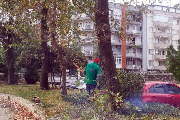 Özellikle yola ve kaldırıma yakın ağaçlarda yapılan bu budamalar sayesinde yayaların görüşünü kısıtlayan dallar temizlendi, yürüyüş güvenliği artırıldı.