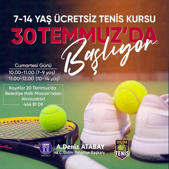 Didim Belediyesi tarafından 7-14 yaş arasındaki Didimli çocuklara yönelik düzenlenecek tenis kursları için kayıtlar başladı.
