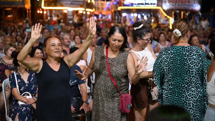 90’lı yılların sevilen parçalarından günümüzün hit şarkılarına uzanan repertuvarlarıyla sahne alan Büyükşehir Belediyesi Konservatuarı, vatandaşlara unutulmaz bir gece yaşattı. Didimliler ve kenti ziyaret eden turistler şarkılara hep bir ağızdan eşlik etti.