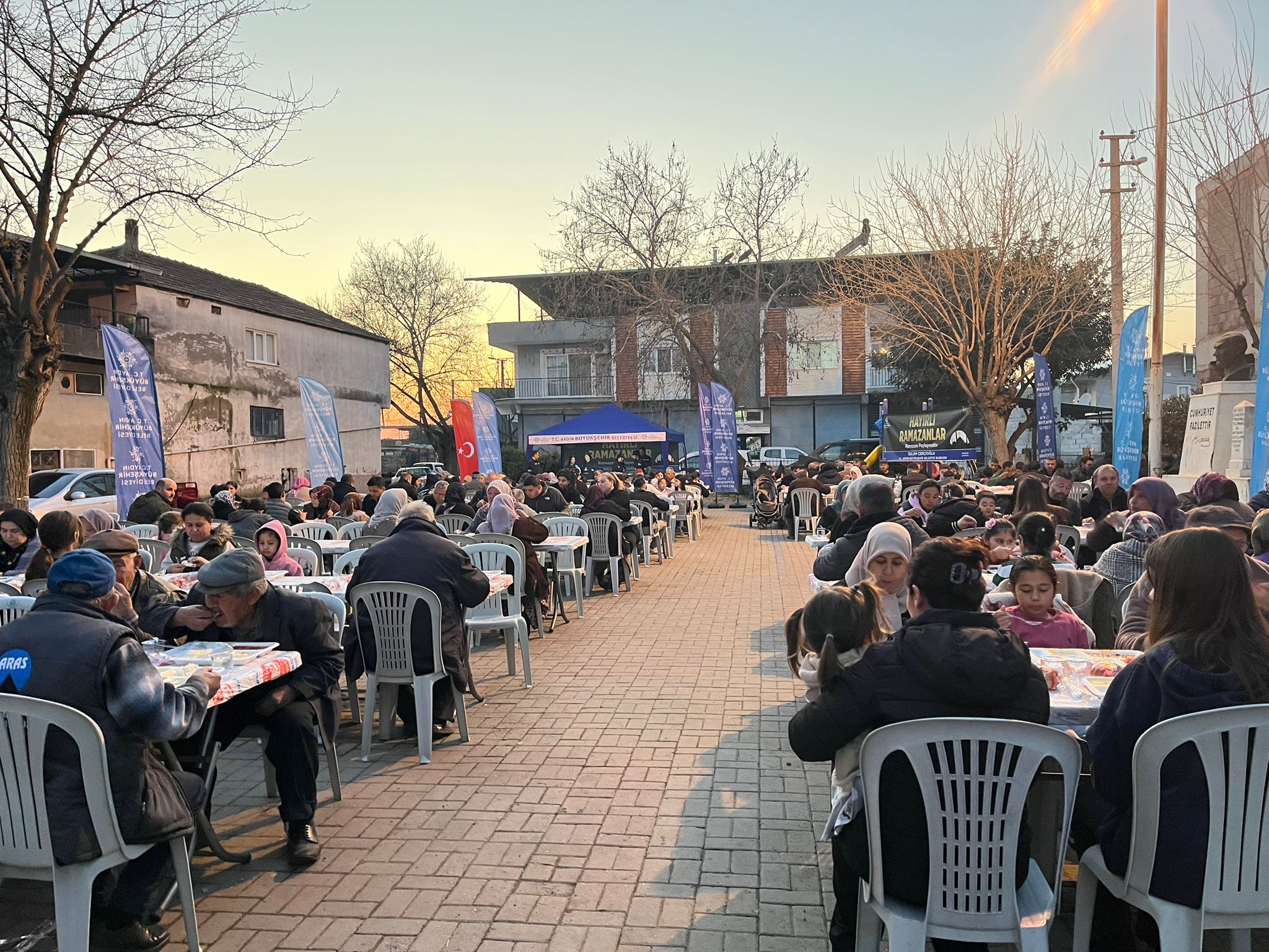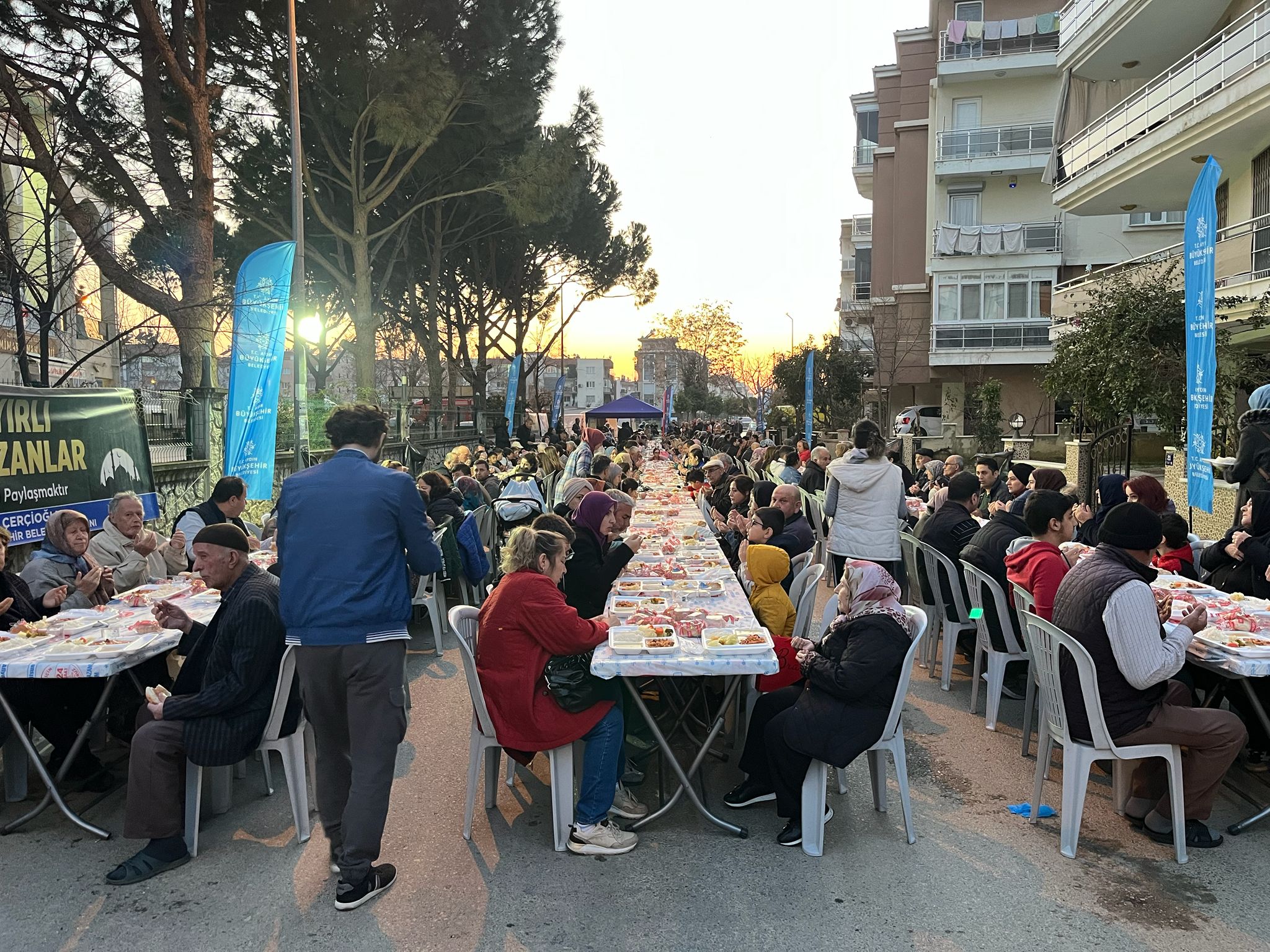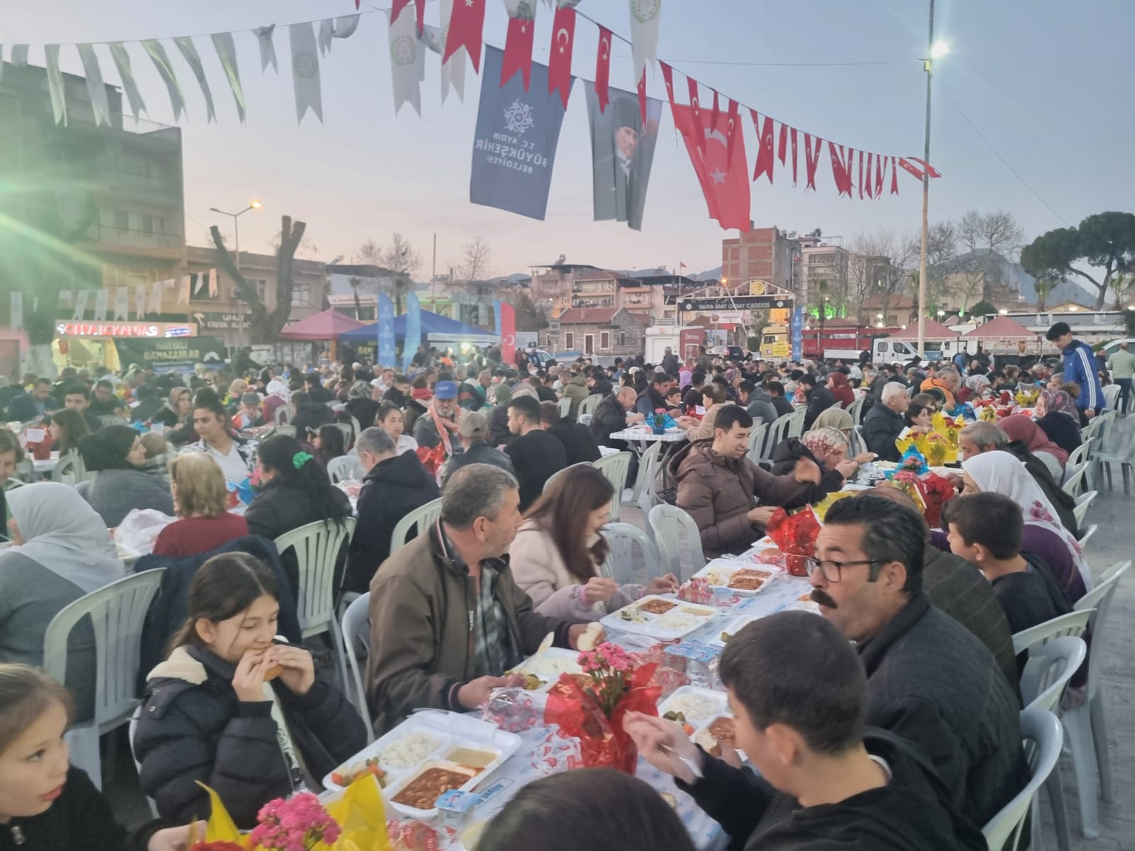 Büyükşehir Belediyesi’nin iftar sofraları bugün de Efeler ilçesinde Atatürk Kent Meydanı ve Adnan Menderes Mahallesi’nde, İncirliova ilçesinde Cumhuriyet Meydanı’nda, Nazilli ilçesinde Muammer Aksoy Mahallesi’nde, Germencik ilçesinde Ortaklar Mahallesi’nde, Koçarlı ilçesinde Bağcılar Mahallesi’nde ve Köşk ilçesinde Beyköy Mahallesi’nde kuruldu.
