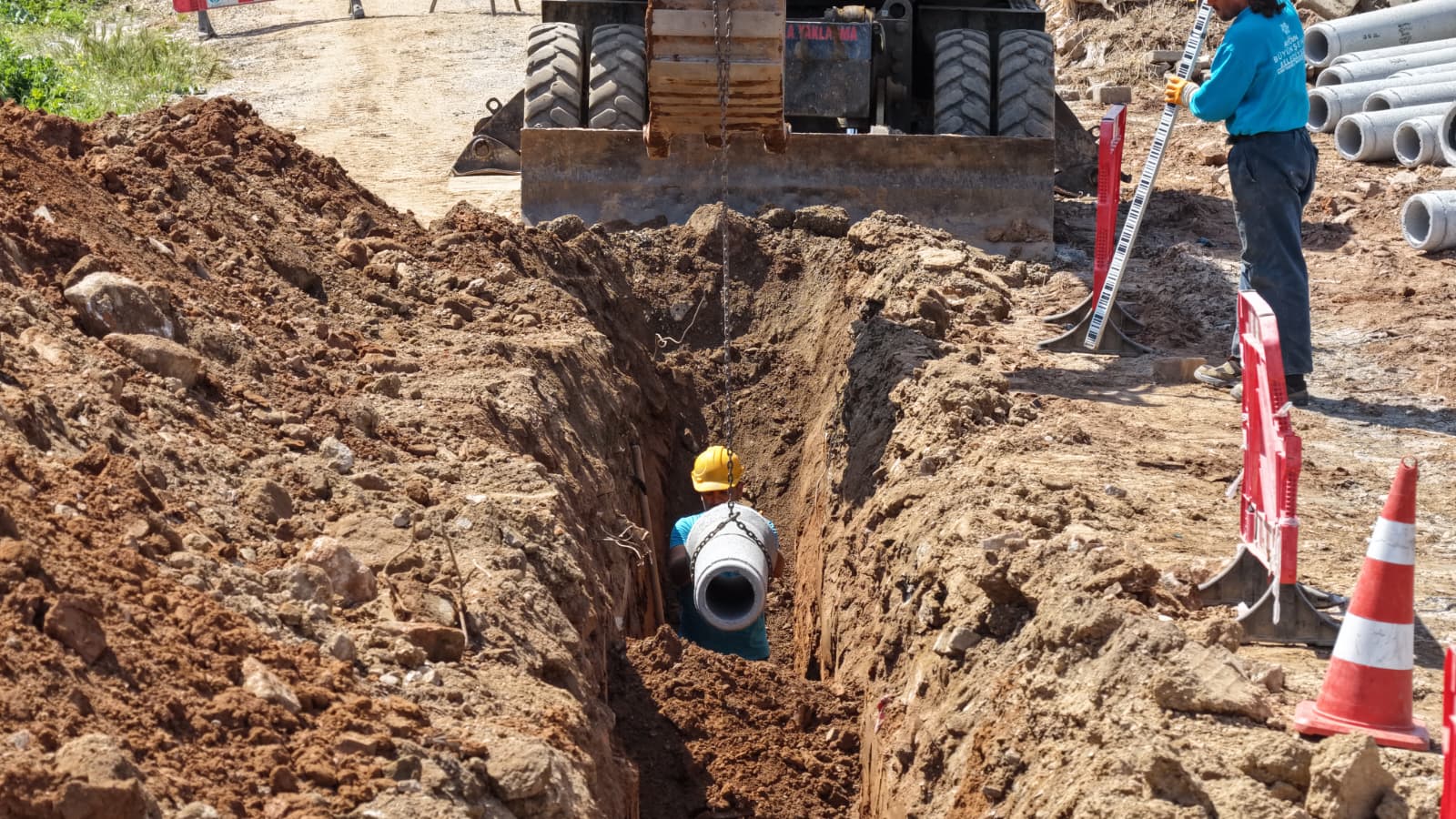 Kentin dört bir yanında eş zamanlı olarak gerçekleştirilen çalışmalar kapsamında Efeler ilçesi Batı Çevre Bulvarı’nda bulunan yeni yerleşimin olacağı bölgede kanalizasyon hattı yapım çalışması başlatıldı.