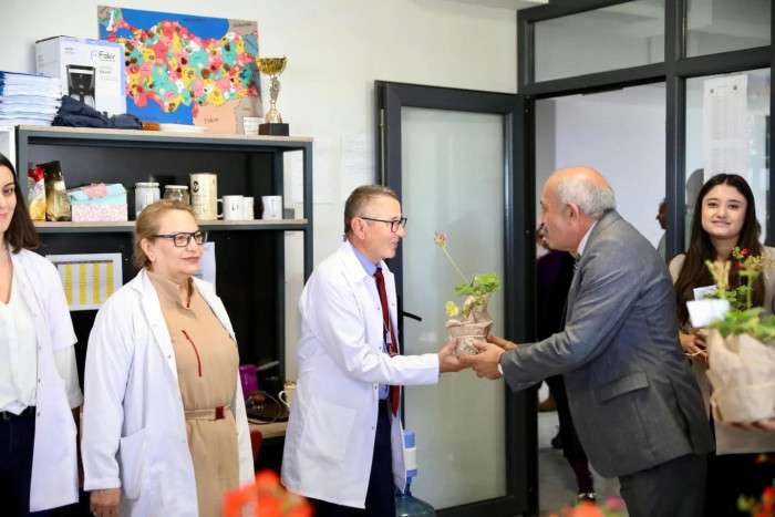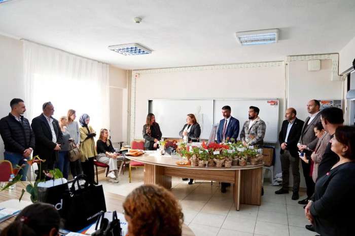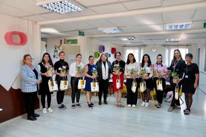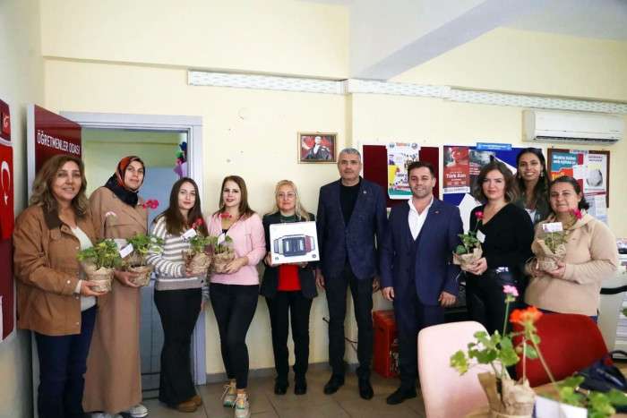 Öğretmenlere Didim Belediyesi’ne ait Akköy Tıbbi Aromatik Bitkiler ve Süs Bitkileri Üretim Fidanlığı’nda yetiştirilen çiçekleri takdim eden Didim Belediye Başkanı Hatice Gençay, ilçede bulunan her okula da kahve makinesi hediye etti.