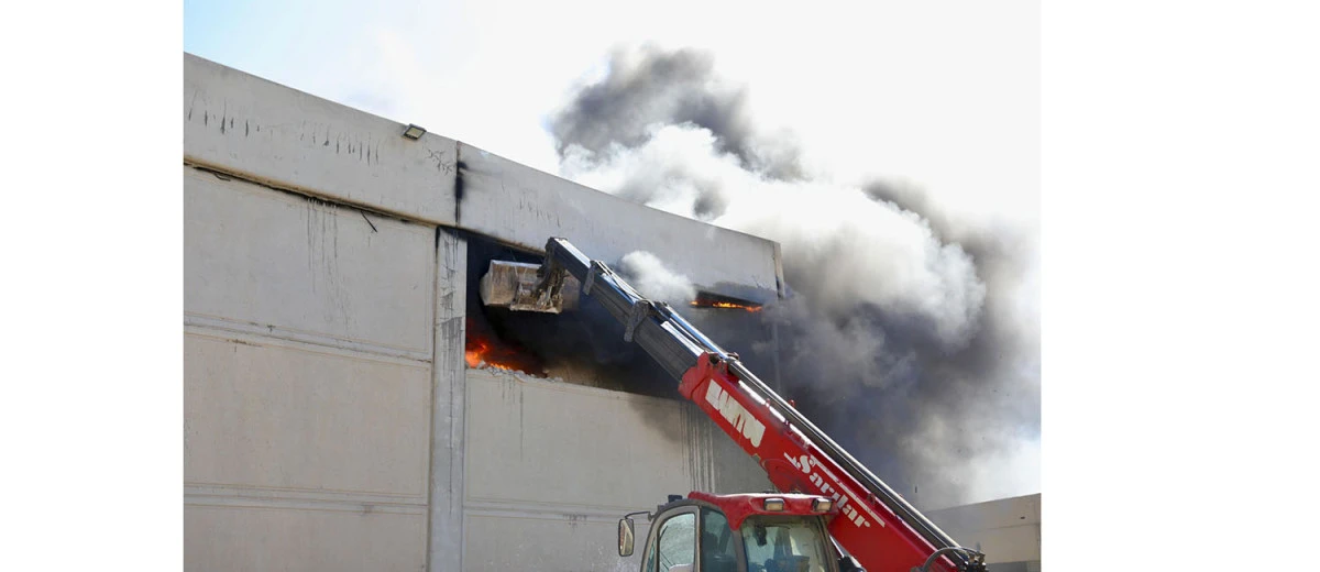 Didim Küçük Sanayi Sitesi’nde bulunan bir inşaat malzemesi deposunda çıkan yangın sırasında Didim Belediye Başkanı Hatice Gençay, ekiplerle birlikte sahada yer alarak süreci anbean takip etti.