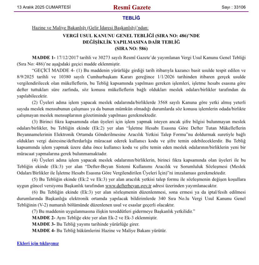 Resmî Gazete’de yayımlanarak yürürlüğe giren Vergi Usul Kanunu Genel Tebliği’nde yapılan değişiklikle, basit usulde vergilendirilen ve 1 Ocak 2026 tarihinden itibaren gerçek usule geçen esnaf ve sanatkârların defter ve beyanname işlemlerine ilişkin önemli bir düzenleme hayata geçirildi.