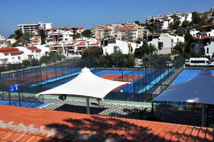 Başkan Ömer Günel’in, proje saha inceleme gezisi, Kadınlar Denizi Mahallesi’nde yapımı tamamlanan Kuşadası Tenis Klübü ile devam etti. Başkan Ömer Günel, sahip olduğu uluslararası standartlarla Türkiye Tenis Federasyonu tarafından da tescillenen Kuşadası Tenis Kulübü’nün ulusal ve uluslararası turnuvalara ev sahipliği yapacağını vurgulayarak “Gece aydınlatmalı 4 tenis kortu ve 1 antrenman kortundan oluşan 6 bin metrekarelik alana sahip tenis kulübümüz, 900 metrekarelik yeşil alan düzenlemesi ile çevresini de güzelleştirecek. Seyirci tribünü, soyunma odaları, duş kabinleri ve kafeteryası ile modern bir spor tesisi olarak tasarladığımız kulübümüz, Kuşadalı çocuklarımızın erken yaşta tenis ile tanışmasına da olanak sağlayacak” dedi.