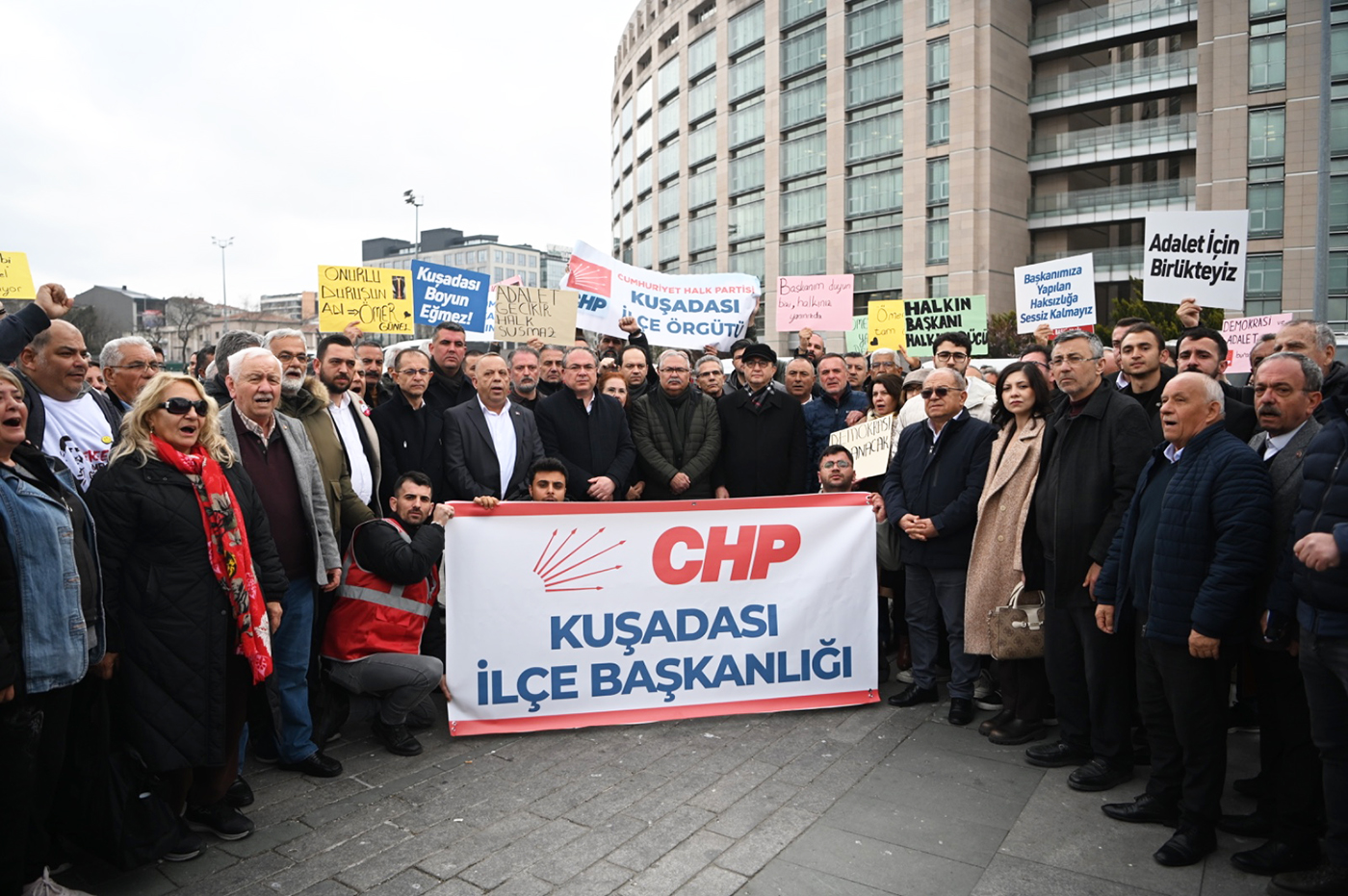 Çağlayan Adliyesi önünde toplanan kalabalığın bekleyişi sürerken, Kuşadası’ndan gelen vatandaşlar ve partililer, Başkan Ömer Günel’in serbest bırakılmasını beklediklerini ifade etti.