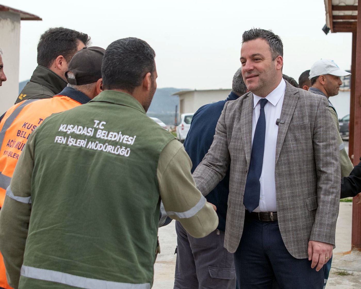 Kuşadası’nda belediye yönetimi, dünkü Park ve Bahçeler Müdürlüğü ziyaretinin ardından bugünde Fen İşleri Müdürlüğünü ziyaret etti. Mesai arkadaşlarıyla bir araya gelen Kuşadası Belediyesi Başkan Vekili Tahsin Demirtaş, “Başkan Ömer Günel’in başlattığı hizmet seferberliğine o gelene kadar tam gaz devam edeceğiz” dedi