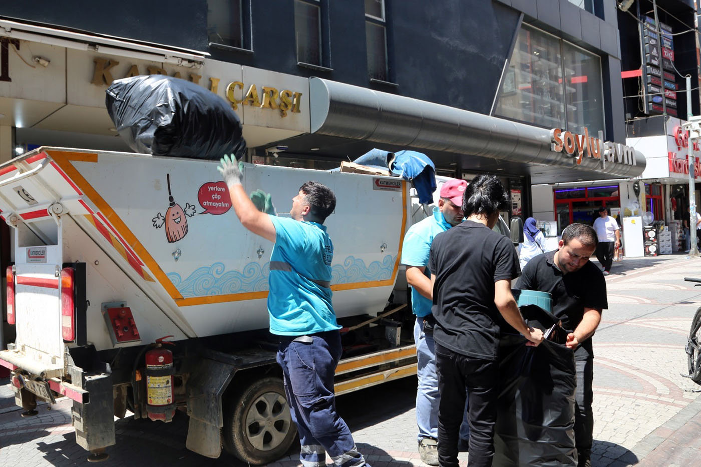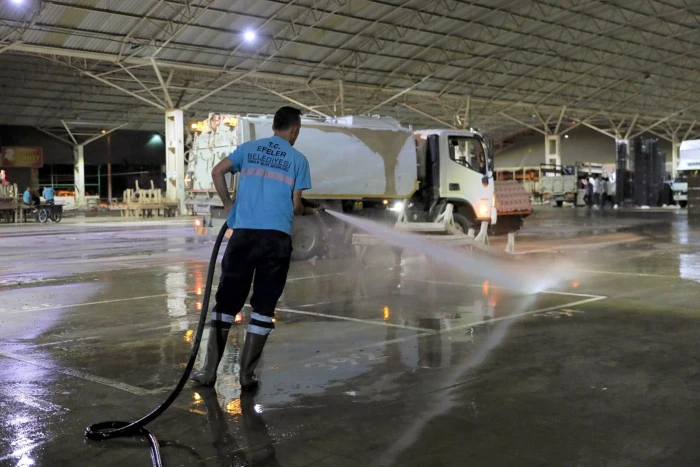 Semt pazarlarının kapanmasının ardından temizlik ekipleri çalışmalara hemen başlıyor. Tezgâhların kaldırılmasının ardından alan detaylı biçimde süpürülüyor, ardından tazyikli su ve özel temizlik ekipmanlarıyla tamamen yıkanıyor. Bu yoğun çalışma, pazar yerlerinin bir sonraki güne tertemiz ve hijyenik şekilde hazırlanmasını sağlıyor. Hem vatandaşlar hem de pazar esnafı, bu düzenli temizlik sayesinde daha güvenli bir ortamda hizmet veriyor ve alışveriş yapıyor.
