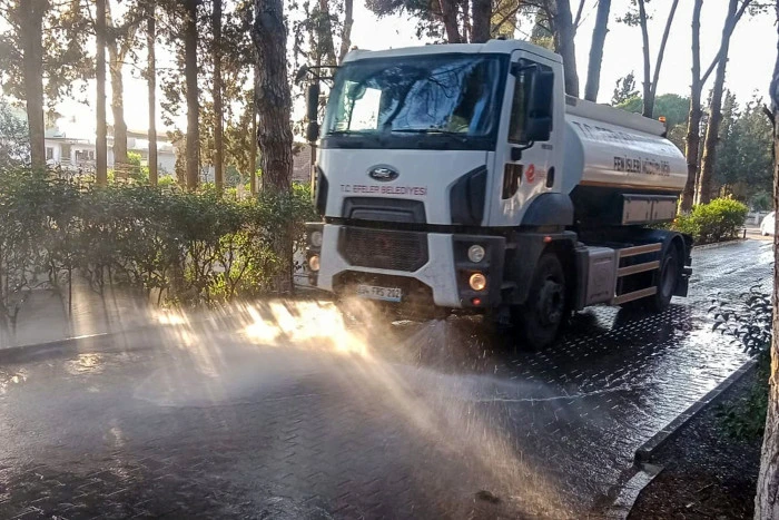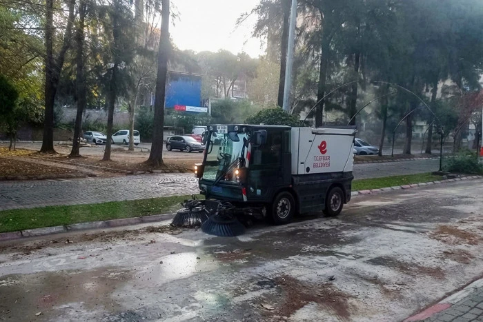 Efeler Belediyesi Temizlik İşleri Müdürlüğü ekipleri, süpürme çalışmalarına ek olarak sokak ve mahallelerde düzenli yıkama faaliyetlerini sürdürüyor. Tazyikli suyla yapılan bu yıkamalar, özellikle yoğun kullanılan bölgelerde hijyen seviyesini yükseltiyor. Ekipler, günün erken saatlerinden gece geç saatlere kadar ilçenin dört bir yanında kesintisiz temizlik çalışması yürütüyor. Böylece Efeler’in sokakları yalnızca temiz değil, aynı zamanda hijyenik ve ferah bir görünüme kavuşuyor.