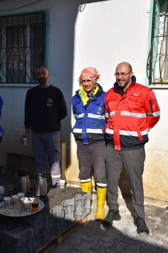 Germencik Belediye Başkanı Burak Zencirci soğuk havaya rağmen özveriyle çalışan işçilere çay götürdü, molalarına katıldı.