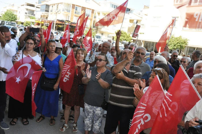 CHP İstanbul İl Başkanlığına yapılan baskın kayyum atamasına karşı tüm il ve ilçelerde eş zamanlı ortak dayanışma basın açıklaması CHP Didim İlçe Başkanlığı önünde yapıldı.