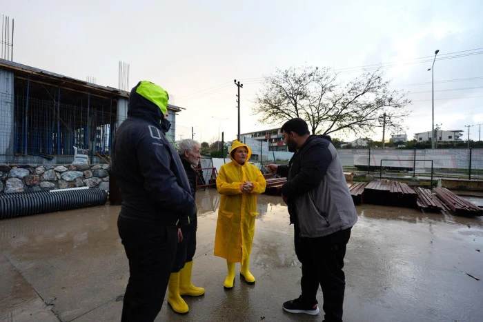 Başkan Hatice Gençay, etkilenen bölgelerde halkla bir araya gelerek sorunları yerinde inceledi. Tahliye ve temizlik çalışmalarını takip eden Başkan, ekiplerden sürece ilişkin bilgi aldı. Başkan, ilçede yağmur suyu hatları ve altyapı çalışmaları konusunda belediyenin yetkisinin bulunmadığını hatırlatarak, “Halkımızın yaşadığı sıkıntıları yakından takip ediyor ve mevcut imkânlarımızla destek sağlamaya devam ediyoruz” dedi.