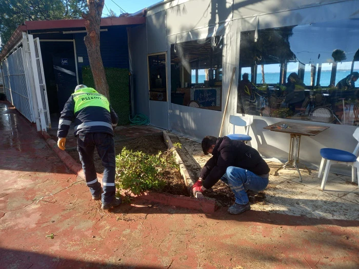 İlçede etkisini kuvvetli şekilde gösteren fırtına nedeniyle zarar gören Soğuk Su Plajı’ndaki seyyar tuvalet ile Barış Cafe Plajı’nda bulunan cankurtaran kulesinin bakım ve onarım işlemleri yapılıyor.
