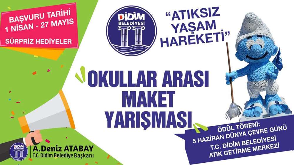 İlçe genelinde geri dönüşüm hareketi başlatan Didim Belediyesi, ilk ve ortaokul öğrencilerine yönelik Okullar Arası Maket Yarışması düzenliyor. Yarışmaya katılan öğrencileri birçok sürpriz ödül bekliyor.