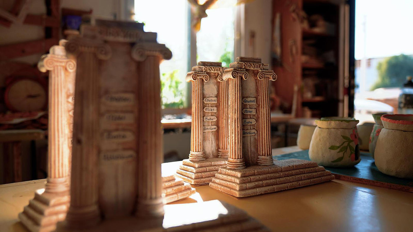 Didim Belediyesi tarafından kültürel mirası yaşatmak ve gelecek nesillere aktarmak amacıyla yürütülen çalışmalar kapsamında faaliyet gösteren Seramik Atölyesi’nde üretilen eserler, kentin tarihinden ve zengin kültürel dokusundan izler taşıyor. Tamamı yerel üretim olan seramikler, hem estetik hem de anlam bakımından dikkat çekiyor.