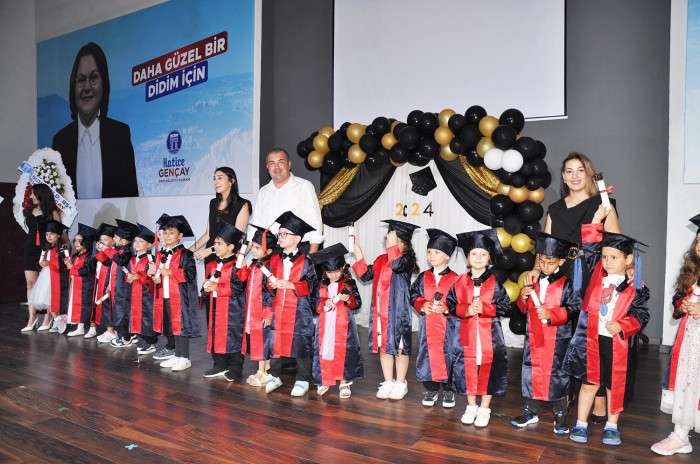 Ana okulu bölümünden mezun olup önümüzdeki eğitim öğretim yılında İlkokula başlayacak olan öğrencilerin ana okulundan mezuniyet belgelerini Didim Belediyesi Başkan Yard. Kaan Topçuoğulları, Meclis Üyesi Gözde Danış Vererek başarı dilediler.