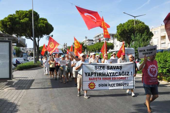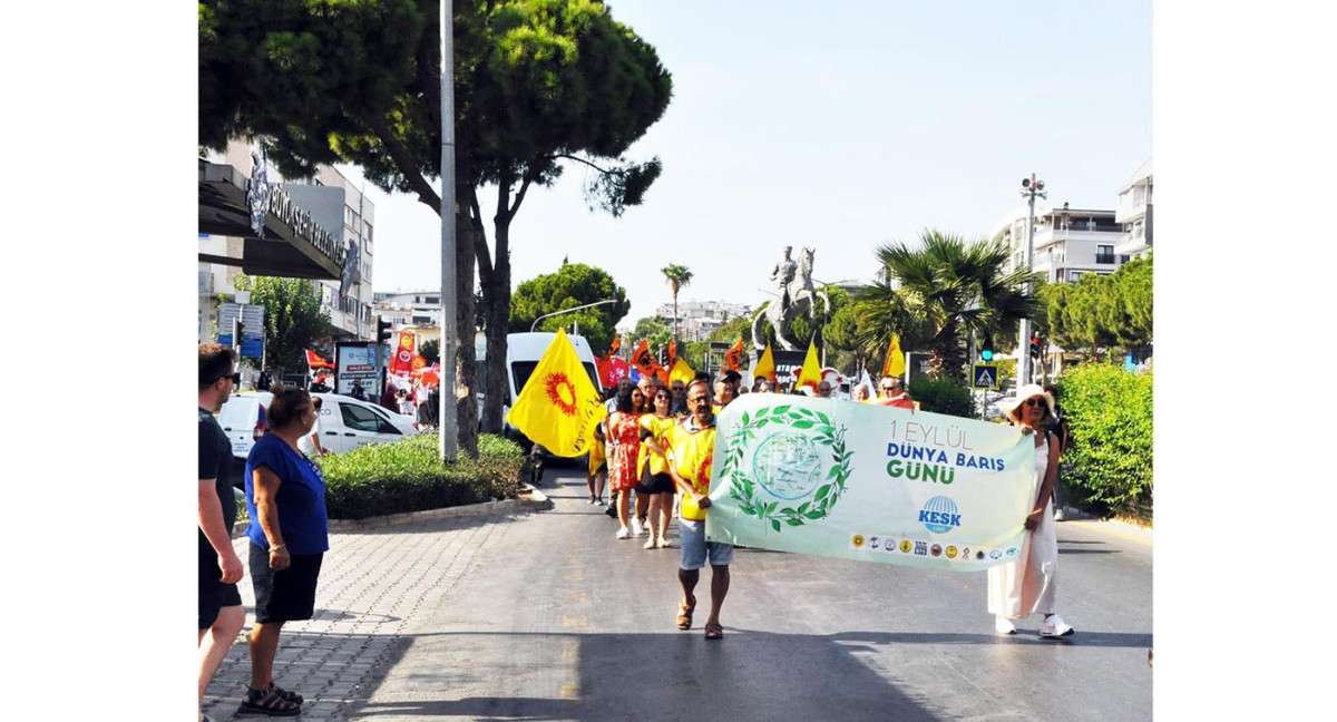 Didim Emek ve Demokrasi Platformu 1 Eylül Dünya Barış Günü’nde düzenlenen “Barış Yürüyüşü” kapsamında Eski Adliye önünde bir araya geldi. Sloganlar ve şarkılar eşliğinde başlayan yürüyüş, Kent Meydanı’nda sona erdi. Platform bileşenleri, 1 Eylül Dünya Barış Günü’yle ilgili mesajlarını iletti.