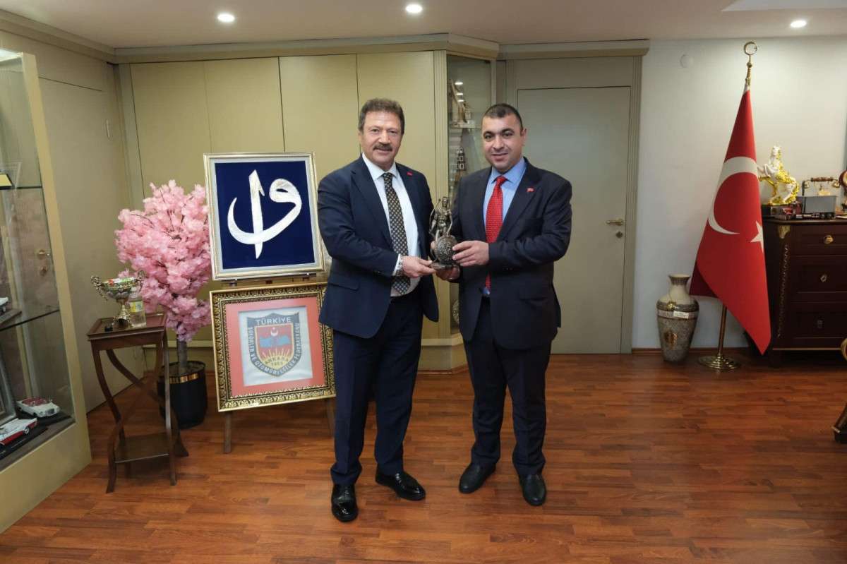 Didim Şoförler ve Otomobilciler Odası Başkanı Barış Şam, Başkan Vekili Nuri Arslan, Yönetim Kurulu Üyesi Özer Çınar ve Genel Sekreter Ediz Verdioğlu ile birlikte Türkiye Şoförler ve Otomobilciler Federasyonu (TŞOF) Genel Başkanı Mehmet Yiğiner’i makamında ziyaret etti. Ziyarette, şoför esnafının sorunları ve çözüm önerileri üzerine görüşmeler yapıldı. Didim heyeti, TŞOF Başkanı Yiğiner’e çeşitli hediyeler takdim ederek çalışmalarında başarılar diledi.