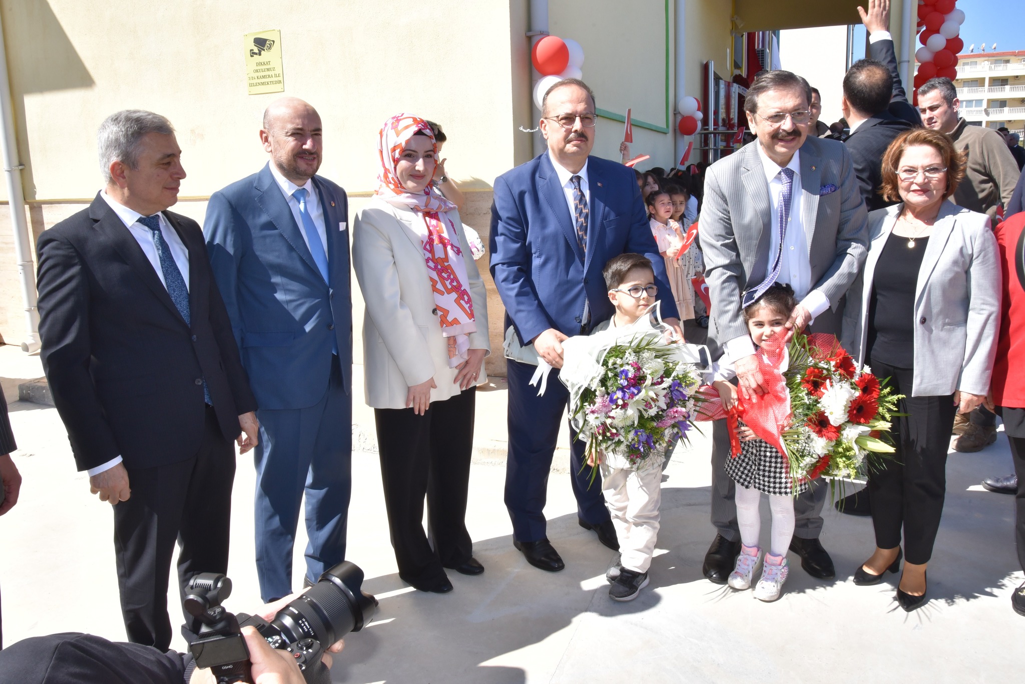 TOBB Başkanı Hisarcıklıoğlu Okul Müdürü Erdoğan Yaman’a açılış anısına hediye verdi. Açılışın ardından yapılan sınıf ziyaretinde öğrencilere hediyeler dağıtıldı ve hatıra fotoğrafı çekimiyle tören sona erdi.
