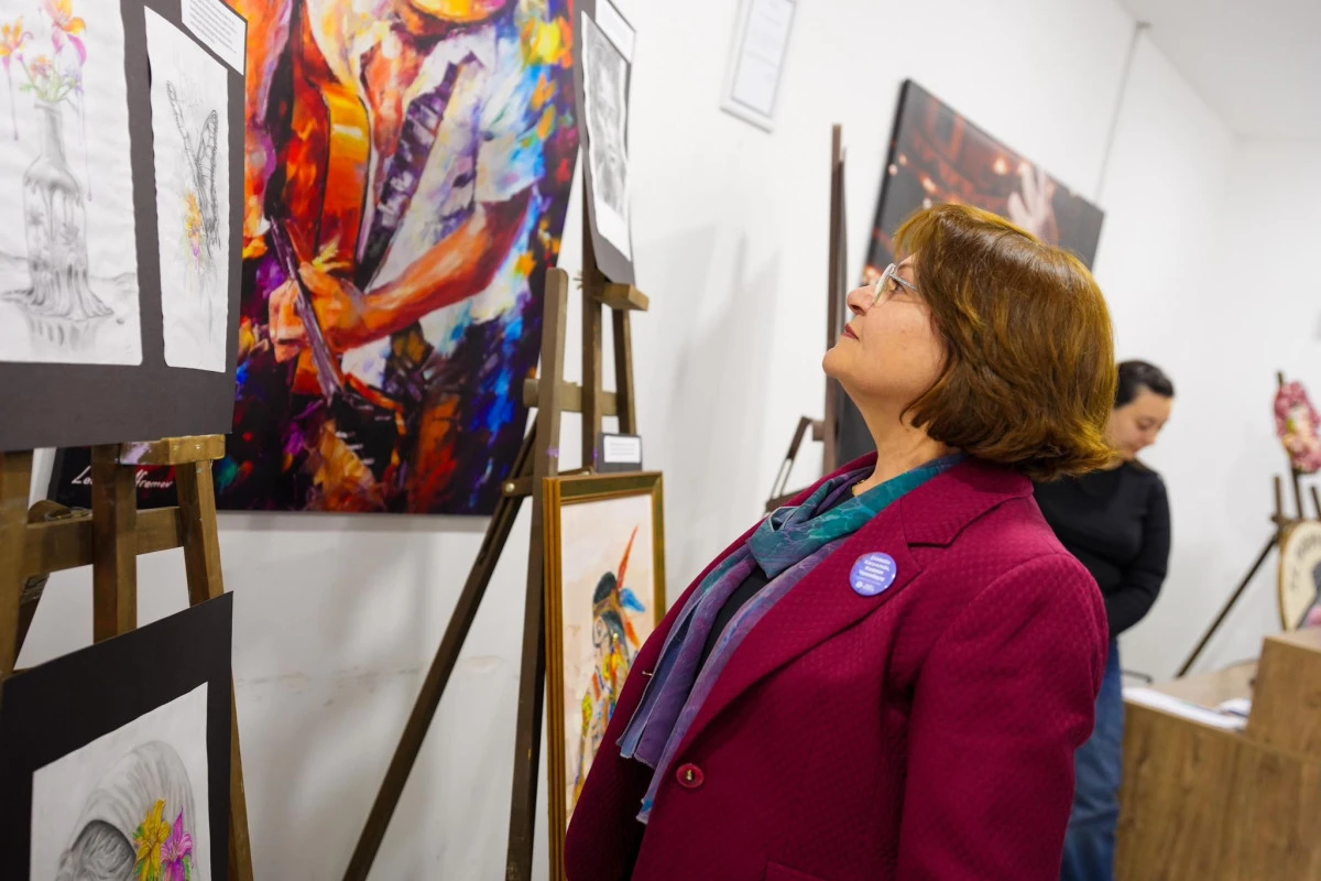 Digem Sanat Akademisi resim kursu öğrencilerinin hazırladığı kadın temalı eserler, etkinlik alanında sergilendi.
