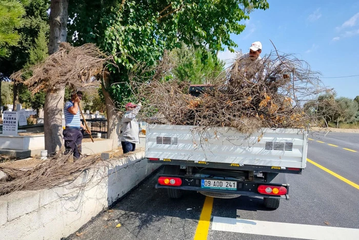 Yabani otların temizlendiği, kurumuş dalların budandığı ve çevre düzenlemelerinin gerçekleştirildiği alanlar, vatandaşların daha rahat bir şekilde kabir ziyareti yapabilmeleri için elden geçirildi.