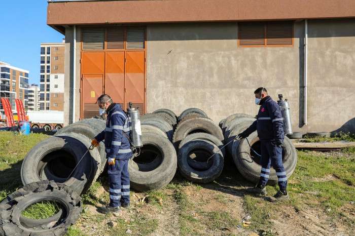 Efeler’in emekçileri, sineklerin üreme alanları olabilecek her türlü noktada detaylı bir çalışma gerçekleştiriyor. Havuzlar, su birikintileri, atıl durumda bırakılan tekerlekler, kovalar ve arıtma noktaları gibi potansiyel üreme alanları, düzenli olarak ilaçlanıyor.
