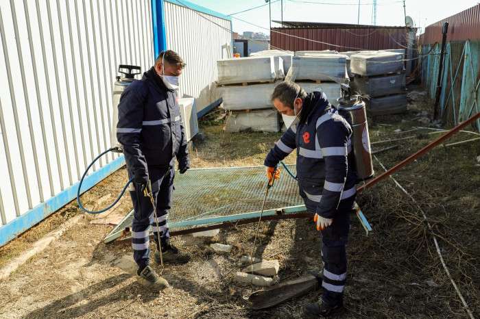 Ekipler, görev alanlarındaki her bölgeyi titizlikle kontrol ederek ilaçlama işlemlerini adım adım gerçekleştiriyor.