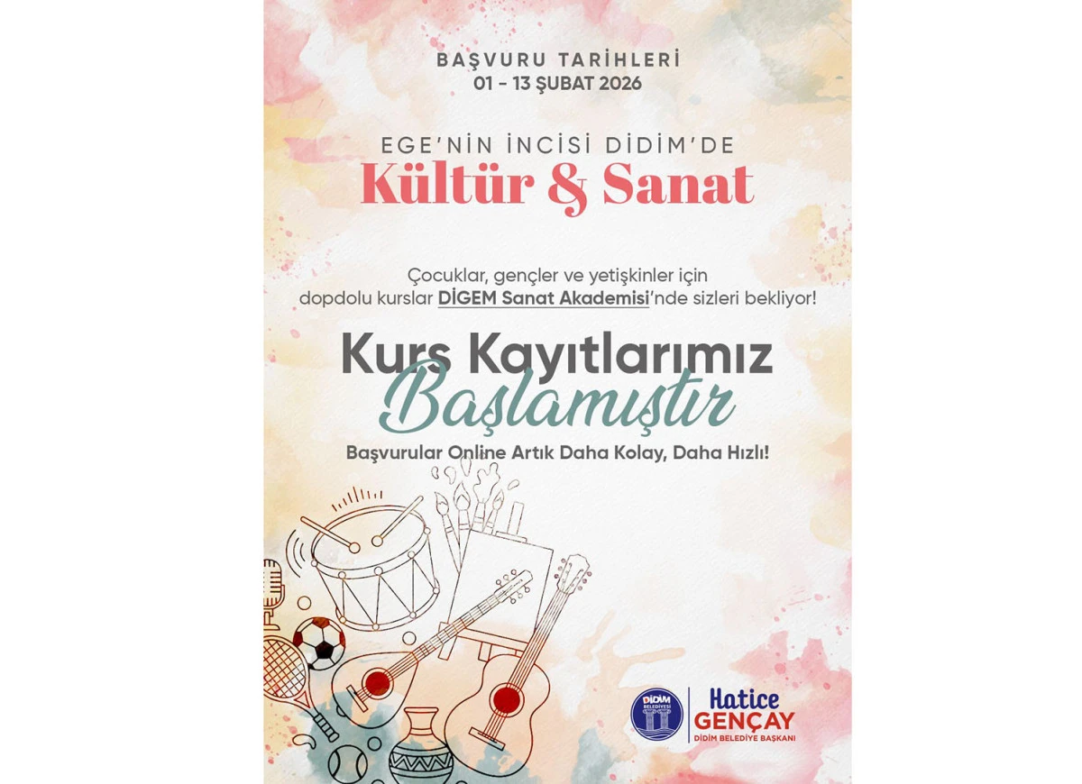 Didimlileri kültür, sanat ve sporla buluşturmayı amaçlayan Didim Belediyesi, resimden müziğe, sahne sanatlarından spora ve kişisel gelişime kadar birçok alanda kurslar düzenliyor. Didim’de kültür ve sanatın merkezi haline gelen DİGEM Sanat Akademisi bünyesinde gerçekleştirilecek kurslarla, her yaştan Didimli kültürel ve sanatsal etkinliklere katılma imkânı bulacak.