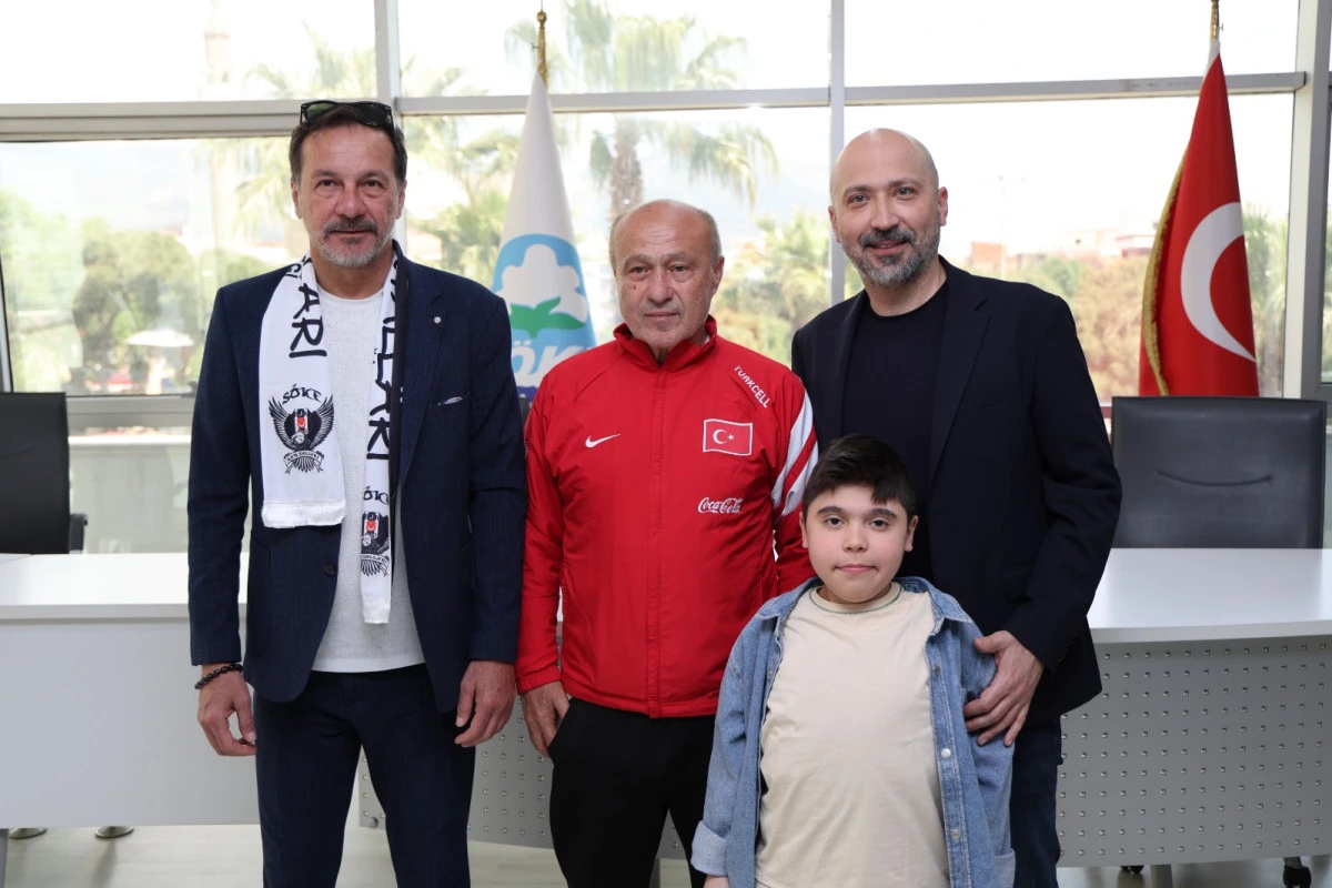 Beşiktaş ve Fenerbahçe formalarıyla şampiyonluklar yaşamış, Milli Takımın unutulmaz isimlerinden ve şu an Altınordu Teknik Direktörü olan Yusuf Şimşek, eski Süper Lig hakemi Mutlu Çelik ve Sökeli futbolcu Anıl Taşdemir, bu anlamlı projeye destek vermek üzere Söke Belediye Başkanı Dr. Mustafa İberya Arıkan’ın konuğu oldu.