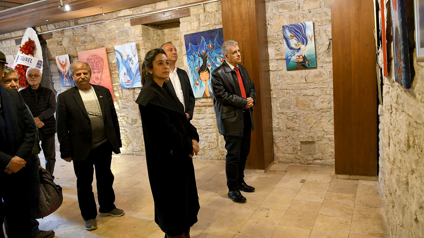 Ressam Gülay Yür Ünaldı’nın kişisel resim sergisinin açılışına Kuşadası Kaymakamı İbrahim Keklik, Kuşadası Belediye Başkan Vekili Çağlayan Erdem, Belediye Meclis Üyesi Nilüfer Tektaş Cevahir ve çok sayıda sanatsever katıldı. Protokol üyeleri serginin açılış kurdelesini hep birlikte kesti. Ardından sergi alanını gezip, akrilik, sulu boya ve fine art teknikleri kullanılarak yapılan resimleri inceledi. Toplam 30 eserden oluşan sergideki resimlerde, ağırlıklı olarak çini motifler ve kadın figürleri yer alıyor. Eserlerinde doğunun geleneksel desenleri ile batının çağdaş sanat yaklaşımını sentezleyen sanatçı, iki coğrafya arasında kültürel bir köprü kuruyor. ‘Çinilerin Dansı’ adlı resim sergisi 27 Şubat Cuma gününe kadar ücretsiz olarak ziyaret edilebilir.