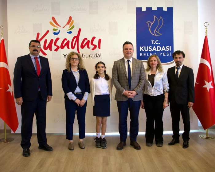Kuşadası Belediyesi’nde 23 Nisan Ulusal Egemenlik ve Çocuk Bayramı kutlamaları kapsamında Belediye Başkan Vekili Tahsin Demirtaş, makamını sembolik olarak Pakize Kamil Çağlayan Ortaokulu öğrencisi Derin İşyar’a devretti.