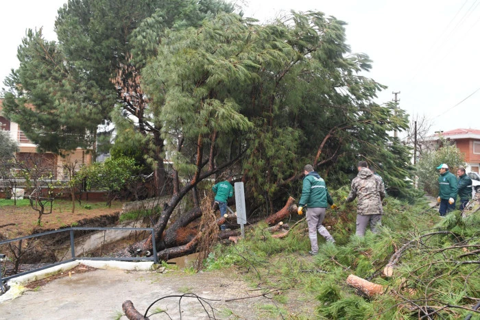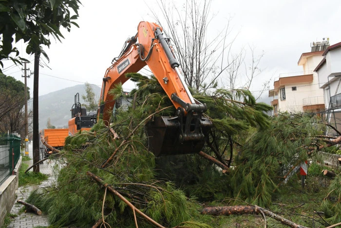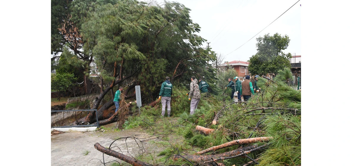 İhbarın ardından hızla olay yerine intikal eden Kuşadası Belediyesi Park ve Bahçeler Müdürlüğü ekipleri, zamanla yarışarak çalışmalara başladı. Devam eden yağışlara rağmen büyük bir özveriyle yürütülen çalışmalarda, dereyi ve yolu tamamen kapatan çam ağacı titizlikle parçalara ayrılarak kaldırıldı. Ekipler, hem yaya hem de araç trafiğinin güvenliğini sağlarken, dere yatağının yeniden açılmasıyla birlikte olası bir su taşkınının da önüne geçti.