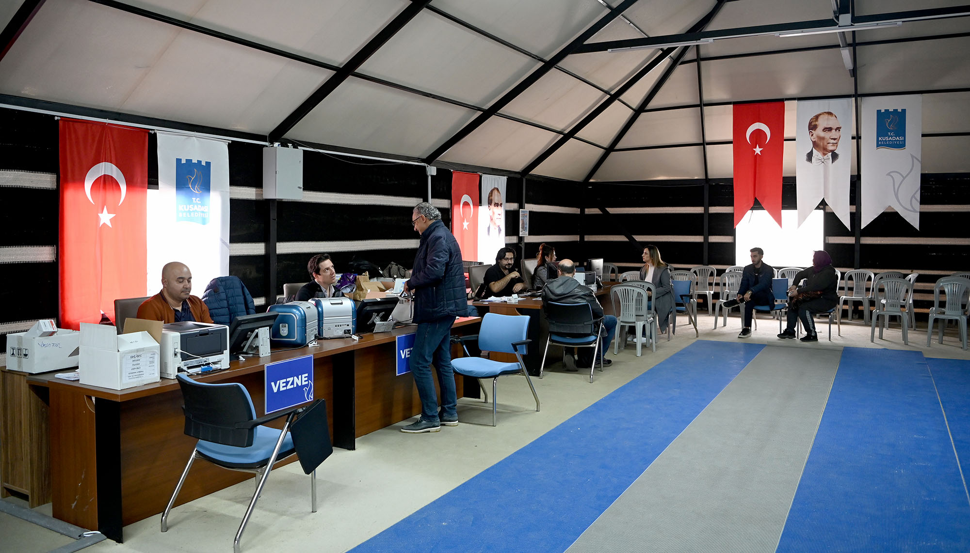 Kuşadası Belediyesi’nin Çakabey Ortaokulu’nun hemen yanında kurduğu Yörük Hizmet Çadırında, tüm işlemler kolaylıkla yapılıyor. Yörük Hizmet Çadırına gelen vatandaşlar Emlak Servisi, Vezne, Güvercin Masa ve AdalıKart ile ilgili işlemlerini kısa sürede tamamlamanın mutluluğunu yaşıyor.