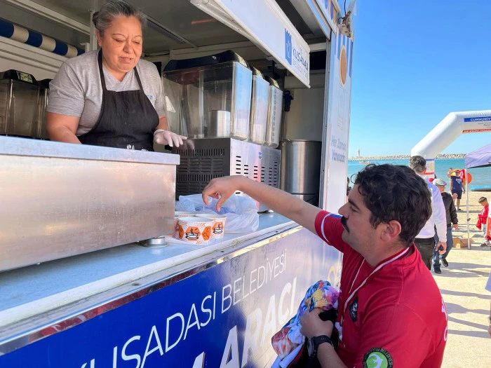 Etkinlik sonunda Kuşadası Belediyesi’nin ikram araçlarından sıcak çorba ve su dağıtılarak yüzücülere ikramda bulunuldu. Cumhuriyet coşkusunun denizde kutlandığı etkinlik, hem spor hem de milli birlik duygusunu bir araya getirdi.