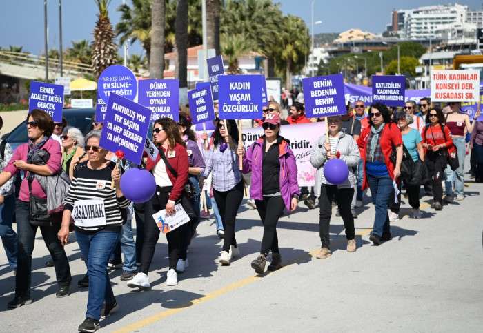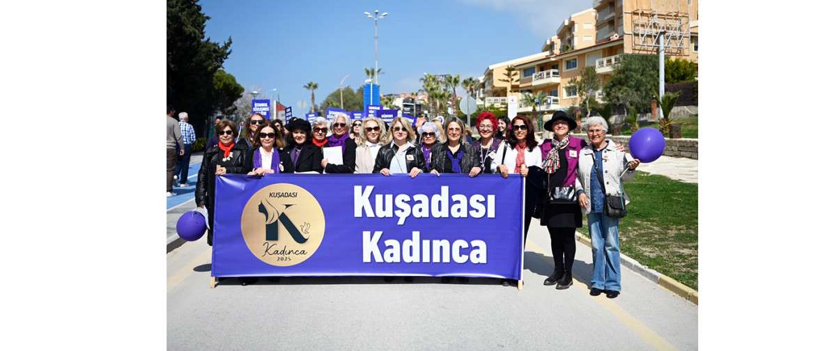 8 Mart Dünya Emekçi Kadınlar Günü kutlamaları, daha sonra Kısmet Otel Kavşağı’ndan başlayarak İsmail Cem Dostluk ve Barış Meydanı’nda sona eren kortej yürüyüşüyle devam etti. Bir çok sivil toplum kuruluşunun yer aldığı korteje Kuşadası Belediye Başkan Yardımcısı Ayşegül Dağlı ve Kuşadası Kadınca Oluşumu Onursal Başkanı Duygu Günel de katıldı. Renkli görüntülere sahne olan kortejde kadınlar, ellerinde taşıdıkları mor renkli dövizler ve attıkları sloganlarla Türkiye’de yaşanan kadın cinayetlerine ve kadına yönelik şiddete dikkat çekti.