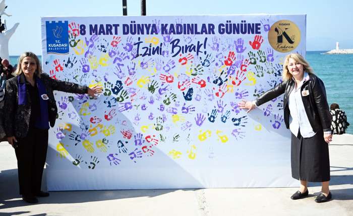Kortejin ardından Kuşadalı kadınlar, El Heykeli önünde Atlas Folk Kültür Sanat Ekibi’nin verdiği müzik dinletisiyle gönüllerince eğlendi. Kutlama etkinliklerine katılan kadınlar, 8 Mart’a özel olarak hazırlanan panoya renkli boyalar kullanarak el izlerini de bıraktı. Kuşadası Belediye Başkanı Ömer Günel’in hediyesi olarak kadınlara sukulent çiçeğinin dağıtıldığı etkinlikler, İbramaki Sanat Galerisi’nde kadın aktivist Selver Savran anısına düzenlenen şiir dinletisiyle son buldu.