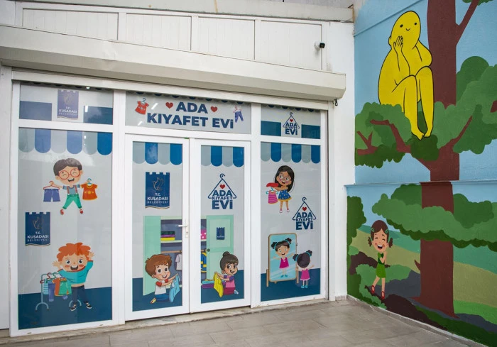 Kuşadası Belediyesi, ihtiyaç sahibi ailelerin 3-12 yaş arasındaki çocuklarına ücretsiz yeni kıyafetler sağlamak amacıyla 25 Kasım 2025 yılında 'Ada Kıyafet Evi’ni açtı.