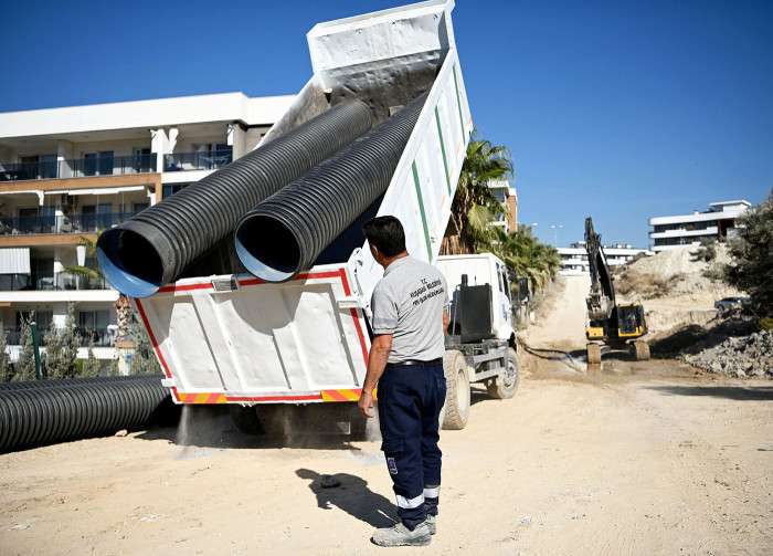 Kuşadası'nda Başkan Ömer Günel’in ikinci hizmet döneminde de kentin köklü altyapı sorunlarını çözüme kavuşturmak için başlatılan hizmet ve yatırım seferberliği hız kesmeden sürüyor. Bu kapsamda Kuşadası Belediyesi Fen İşleri Müdürlüğü'ne bağlı ekipler tarafından kenti kış mevsimine hazırlamak amacıyla farklı noktalara yağmur suyu hattı döşeniyor.
