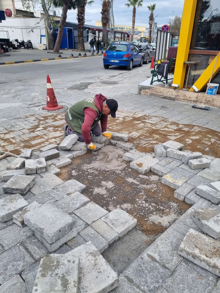 Kuşadası Belediyesi tarafından kent genelinde yaşanabilecek olumsuzlukları anında giderebilmek amacıyla kurulan Acil Müdahale Birimi ise vatandaşlardan gelen talep üzerine programa alınan bölgelerde asfalt yaması, parke taşı ve kaldırım tamiratı çalışmaları yürütüyor. Bu kapsamda ekipler tarafından hafta boyunca turistik çarşı, Kaleiçi, Kadınlar Denizi, İkiçeşmelik, Davutlar, Karaova, Değirmendere, Camikebir, Soğucak, Hacıfeyzullah ve Güzelçamlı mahallelerinde ASKİ, ENERYA, AYDEM ve Türk Telekom’un çalışmalarından kaynaklı bozulmalar nedeniyle tamirat yapıldı.