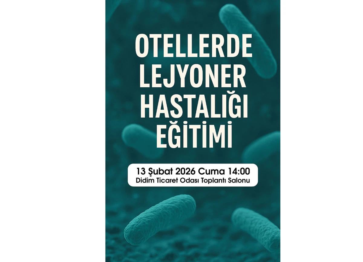 Aydın İl Halk Sağlığı Müdürlüğü tarafından 13.02.2026 Cuma günü Didim Ticaret Odası Toplantı Salonu’nda saat 14.00’da “Lejyoner Hastalığından Korunmak, Alınacak Önlemler ve Koruyucu Uygulamalar” konulu eğitim yapılacaktır.