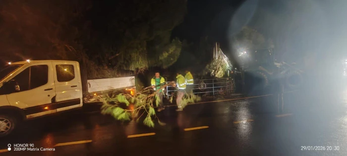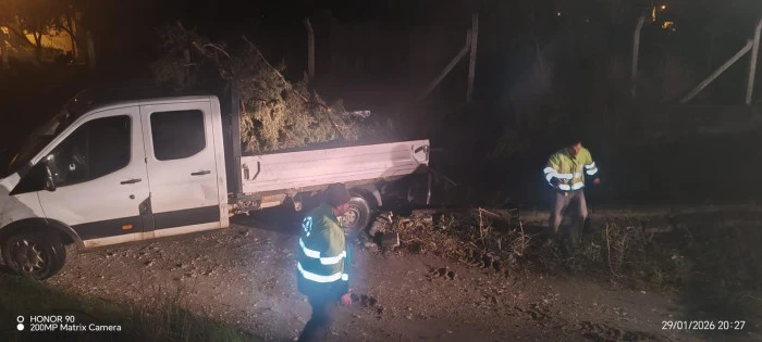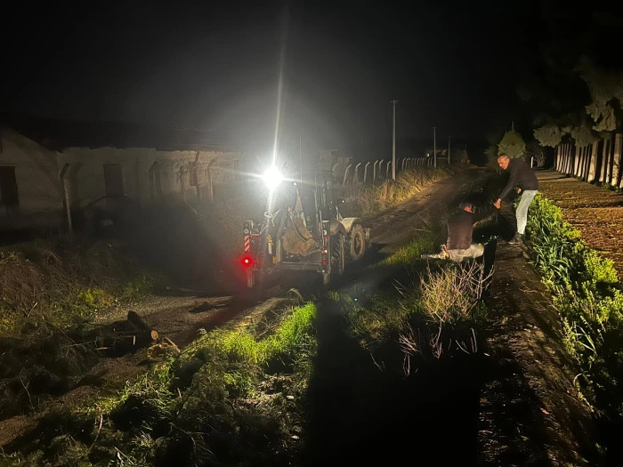 Şiddetli yağış ve rüzgar sebebiyle Mursallı mezarlığındaki ağaçlar devrildi, Germencik Belediyesi ekipleri müdahale etti.