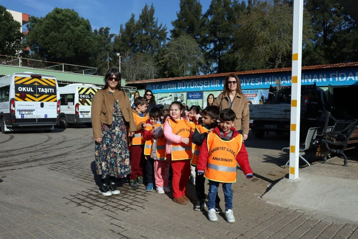 Cumhuriyet İlkokulu anasınıfı öğrencileri ve öğretmenleri, derslerini Aydın Büyükşehir Belediyesi’nin Mimar Sinan Mahallesi’ndeki fidanlığında işledi.