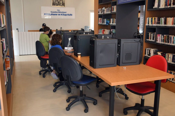 Modern tasarımı, sakin atmosferi ve zengin içerikleriyle dikkat çeken Kütüphane ve Kitap Kafe, sadece bir okuma alanının ötesine geçerek Kuşadası’nın kültürel buluşma noktası haline geldi. İçerisinde bulunan 6613 çocuk ve yetişkinlere yönelik kitap, hem öğrencilere hem de kitap tutkunlarına geniş bir yelpazede okuma imkânı sunarken, üyelik oluşturanlar için de 15 gün süreyle kitap ödünç alma olanağı da mevcut.