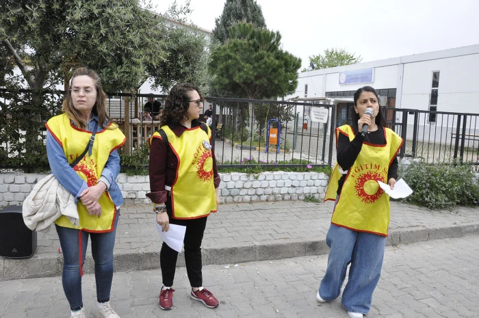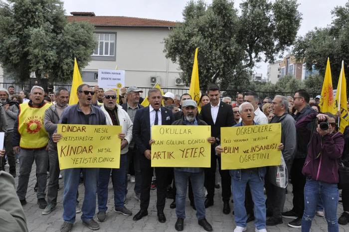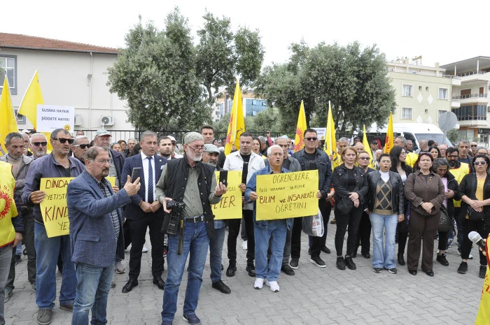 Didim İlçe Milli Eğitim Müdürlüğü önünde toplanan kalabalık, son dönemde okullarda tırmanan şiddet vakalarına karşı tek ses oldu. Eğitim-Sen Didim Şube Başkanı Neslihan İnan tarafından okunan basın açıklamasında, eğitim sisteminin geldiği nokta sert sözlerle eleştirildi. İnan, okulların hem öğretmenler hem de öğrenciler için güvenli alan olmaktan çıktığını vurgulayarak şunları söyledi: