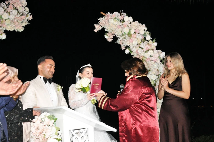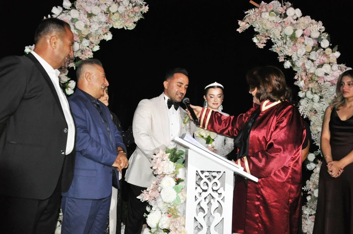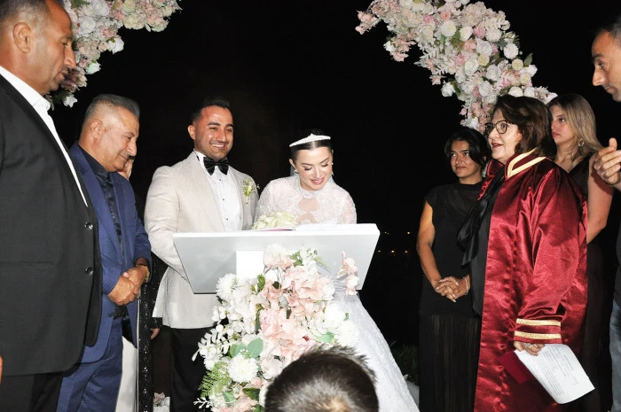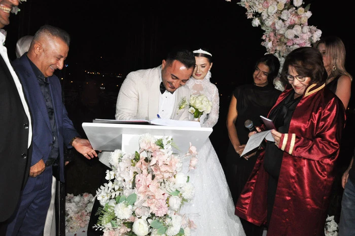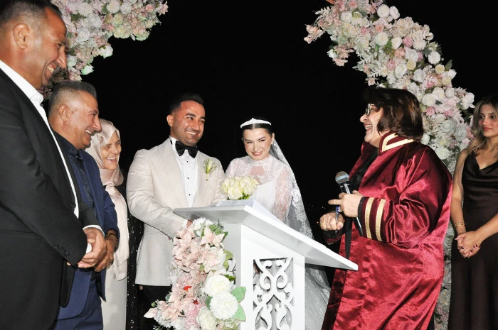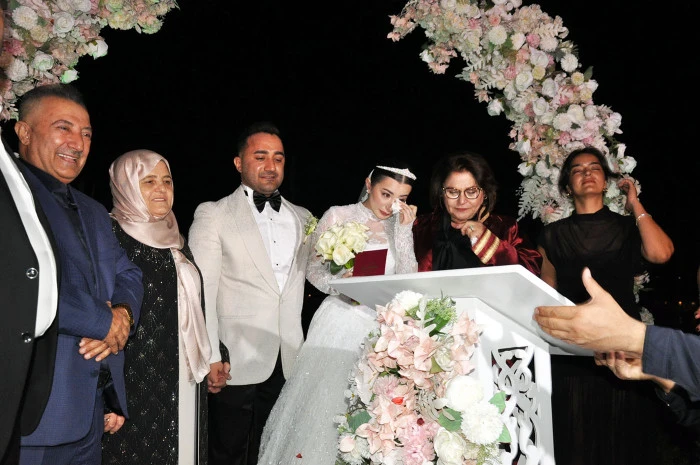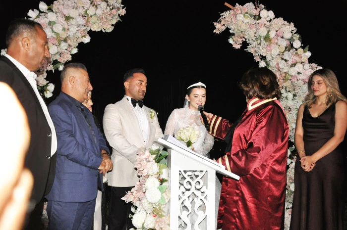 Genç çiftin nikâhını Didim Belediye Başkanı Hatice Gençay kıyarken, nikâh akdi sırasında duygu dolu anlar yaşandı. Küçük nedimelerinin ve Müzik eşliğinde alkışlarla alana giriş yapan Esra ve Sercan çifti, nikâh defterini imzalayarak birlikteliklerini taçlandırdı.